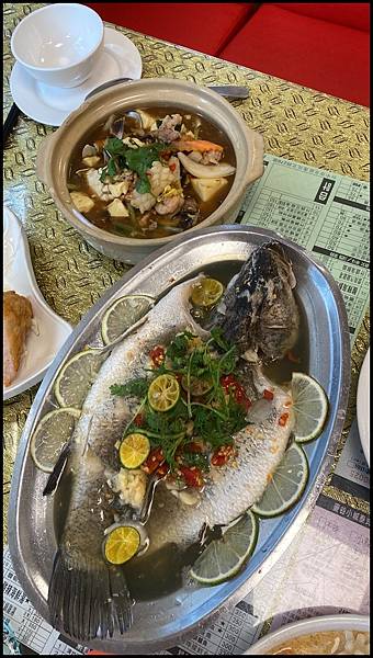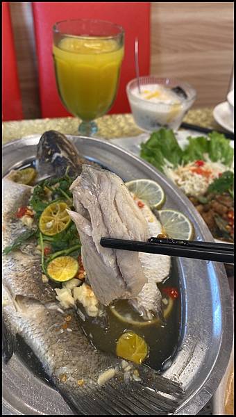 選用新鮮鱸魚清蒸,配上金桔、蒜末、香菜、辣椒、魚露與檸檬汁