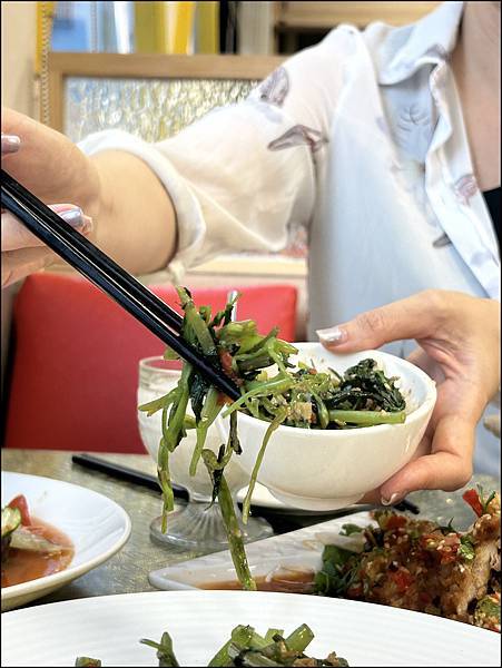 炒得油亮油亮,保有空心菜爽脆口感,蝦醬鹹香不死鹹