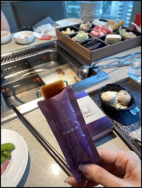 所以我們在火鍋一上桌前,默默先吃了一條舒暢酵凍,再搭配一大杯水